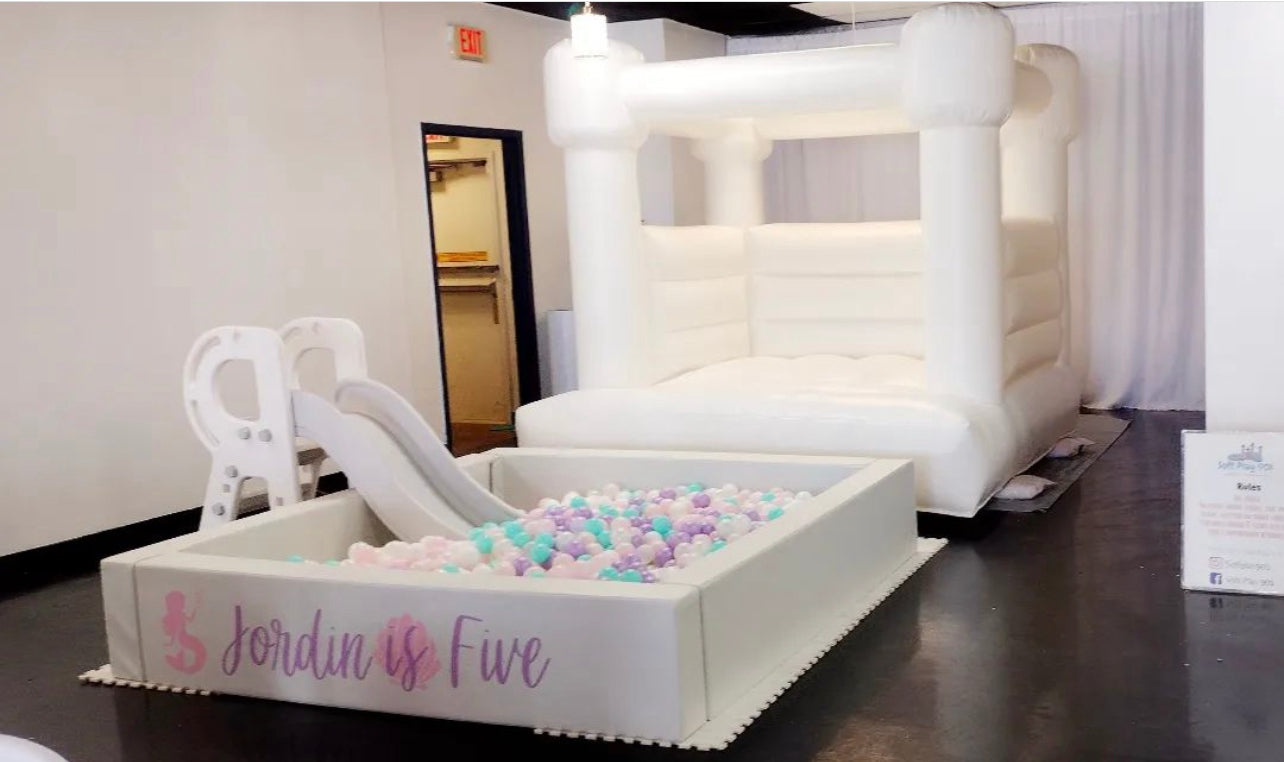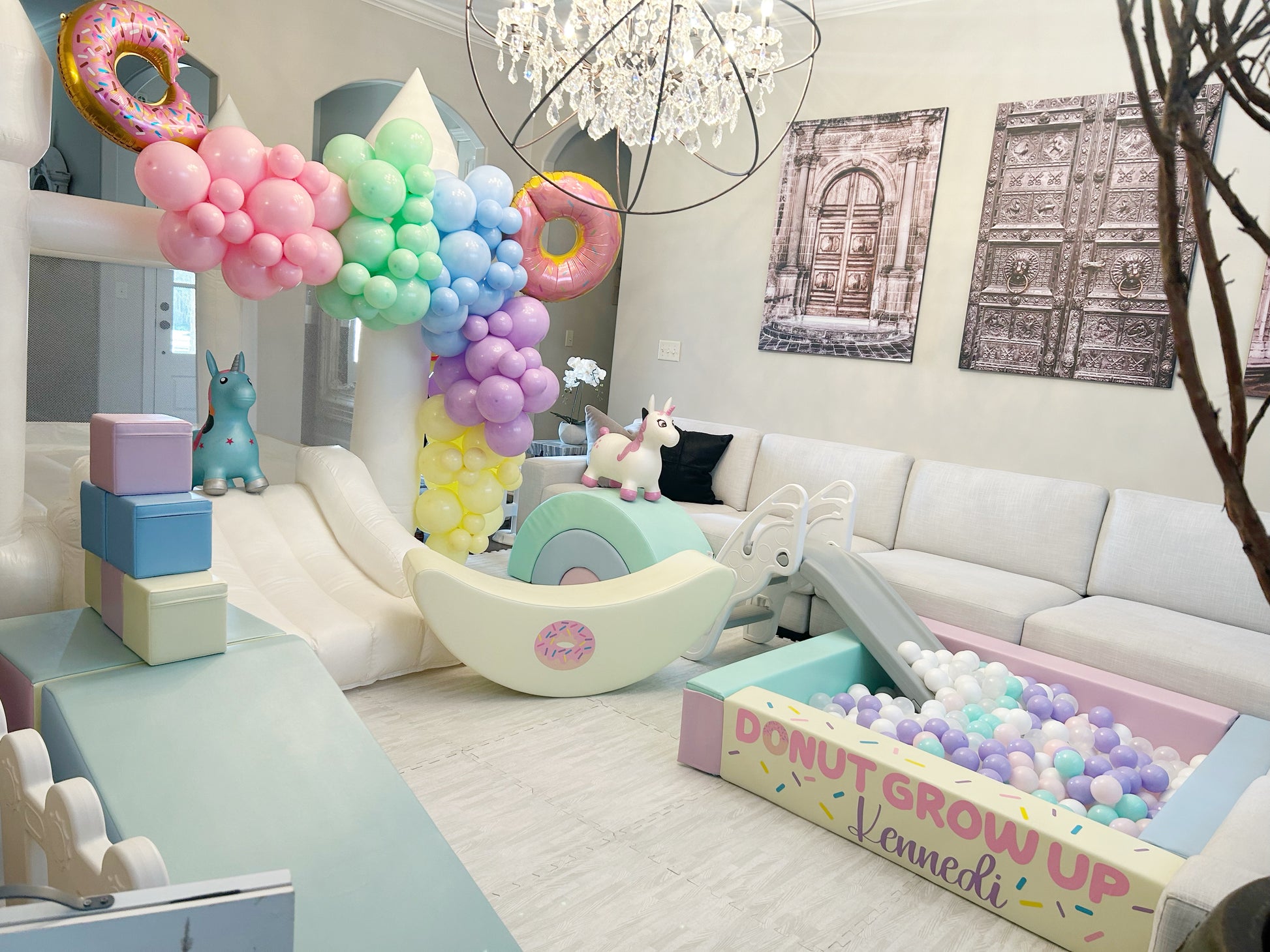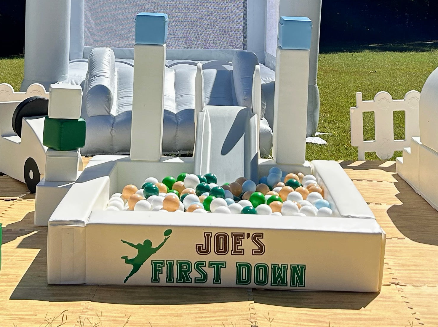 *Full personalizations will include a decal for the bounce house, ball pit, soft play blocks and balloon accent if you ordered balloons from us.