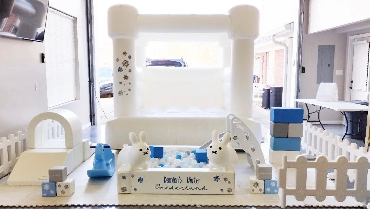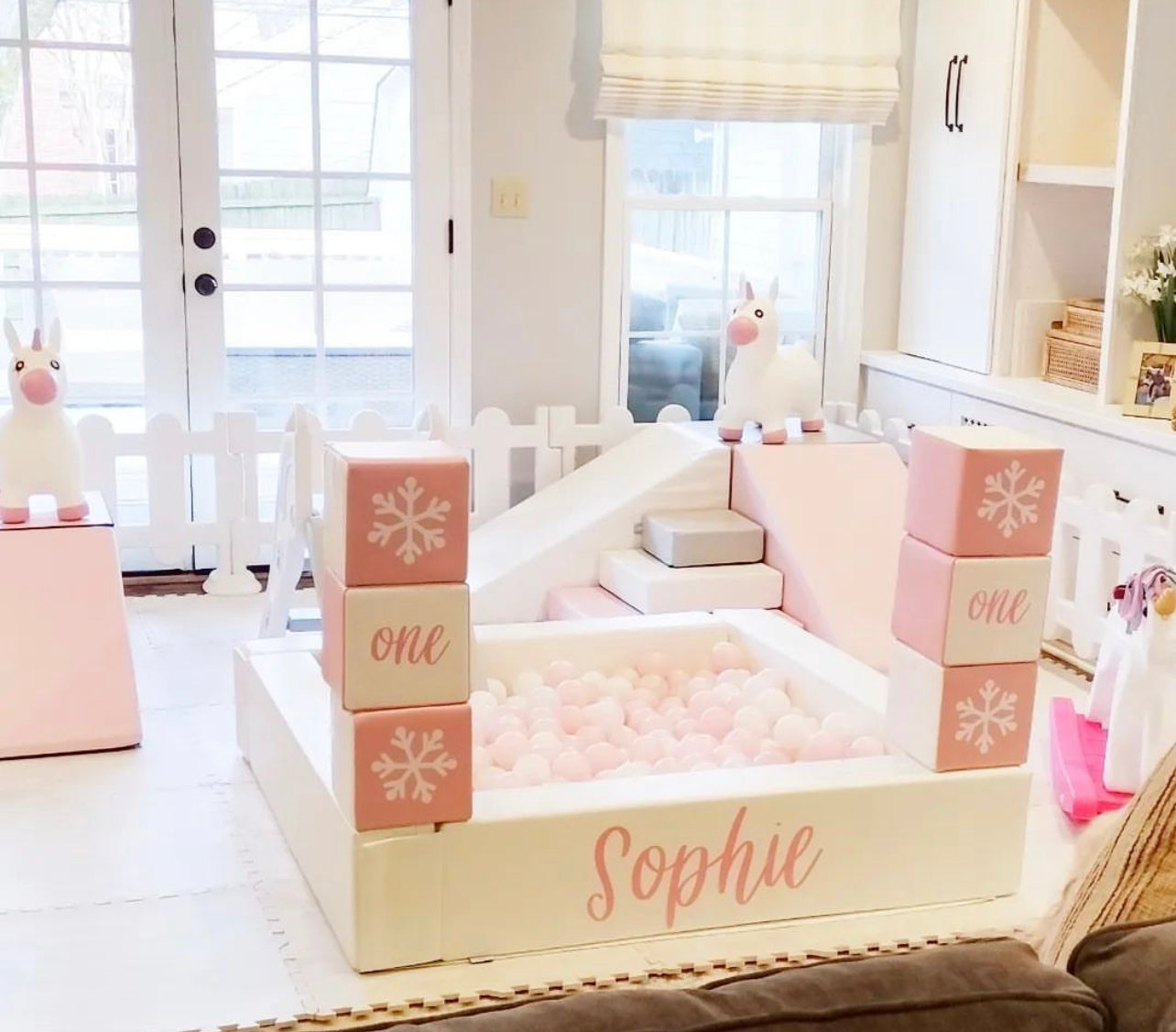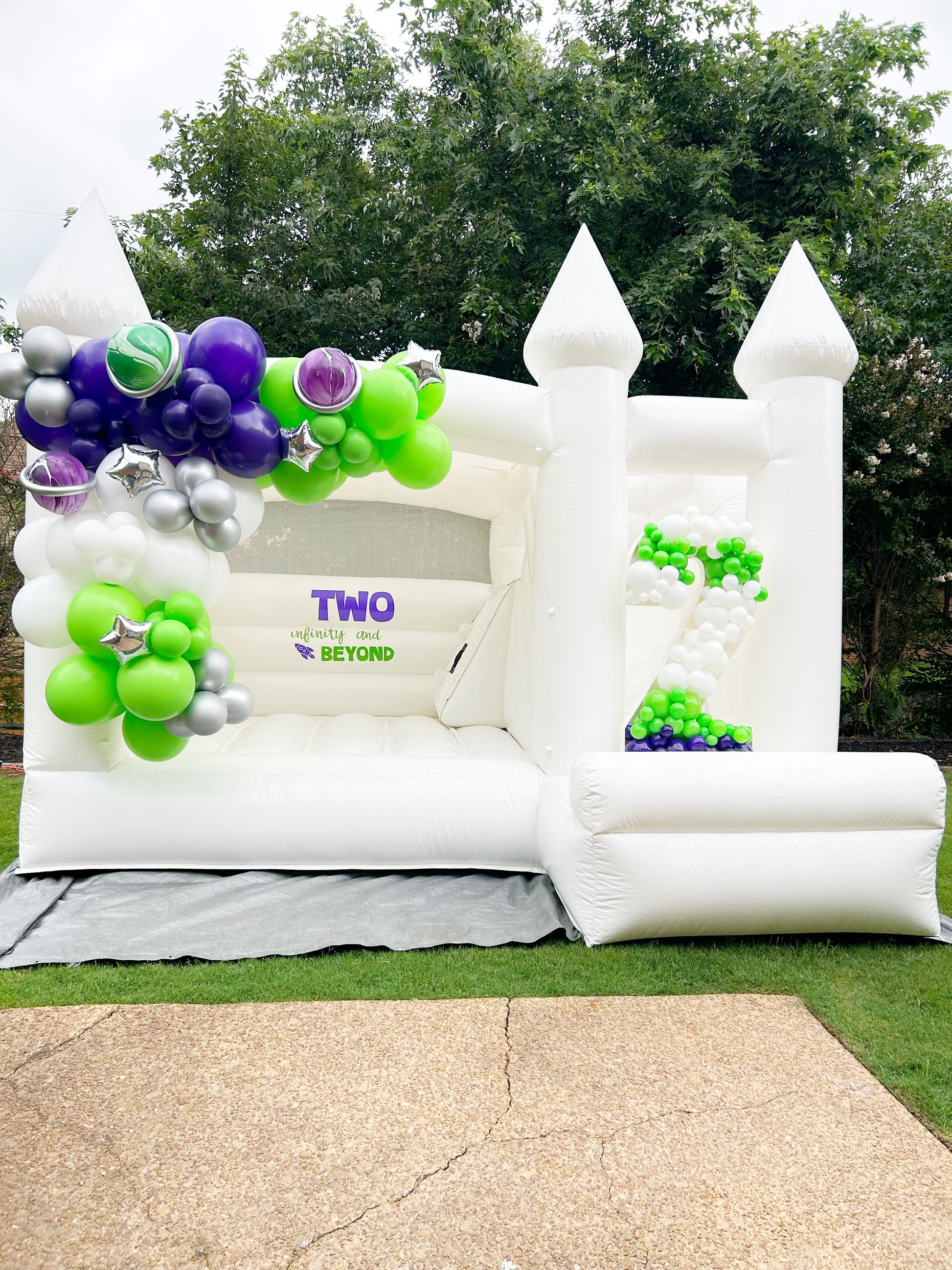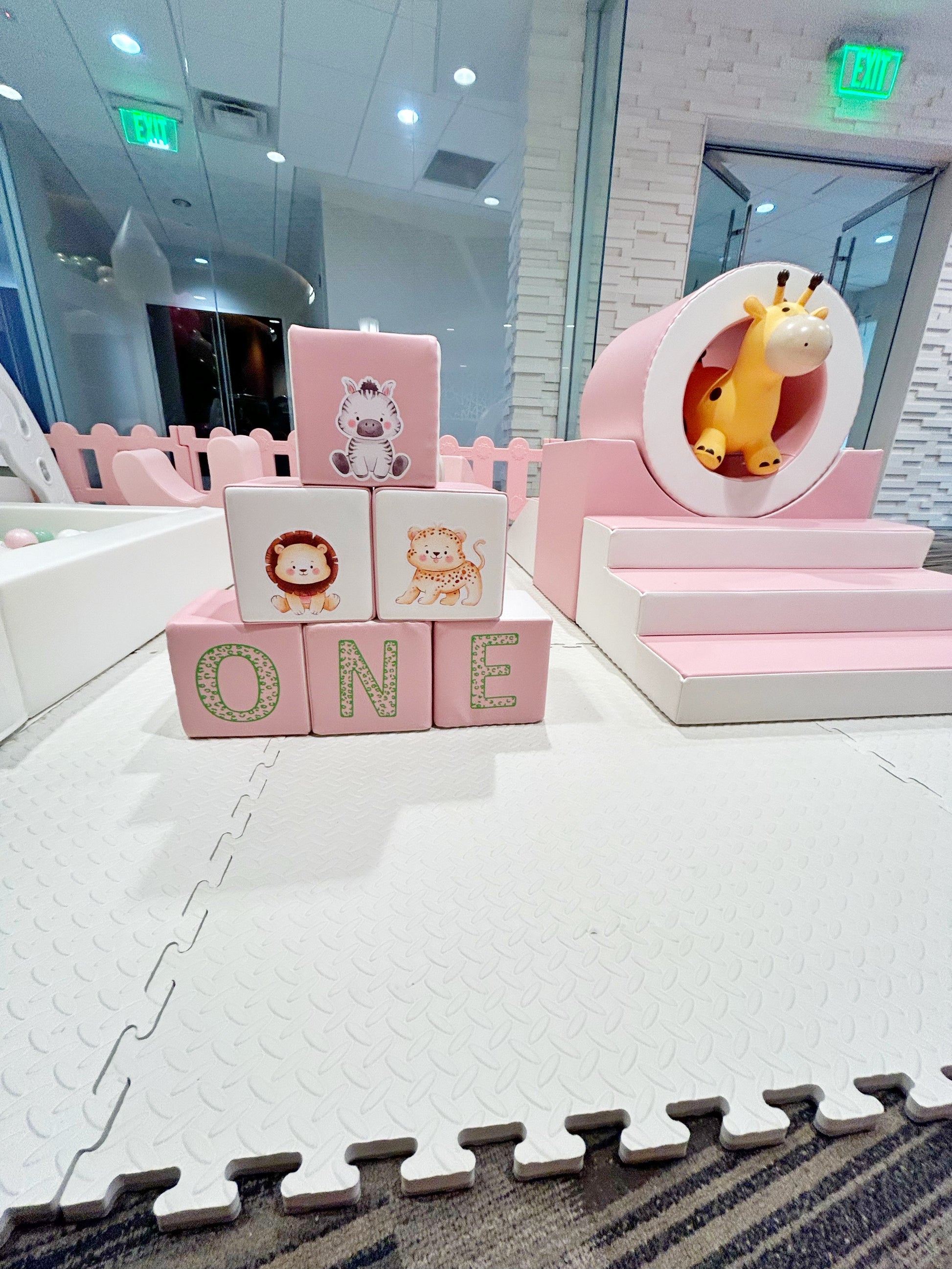 *Full personalizations will include a decal for the bounce house, ball pit, soft play blocks and balloon accent if you ordered balloons from us.