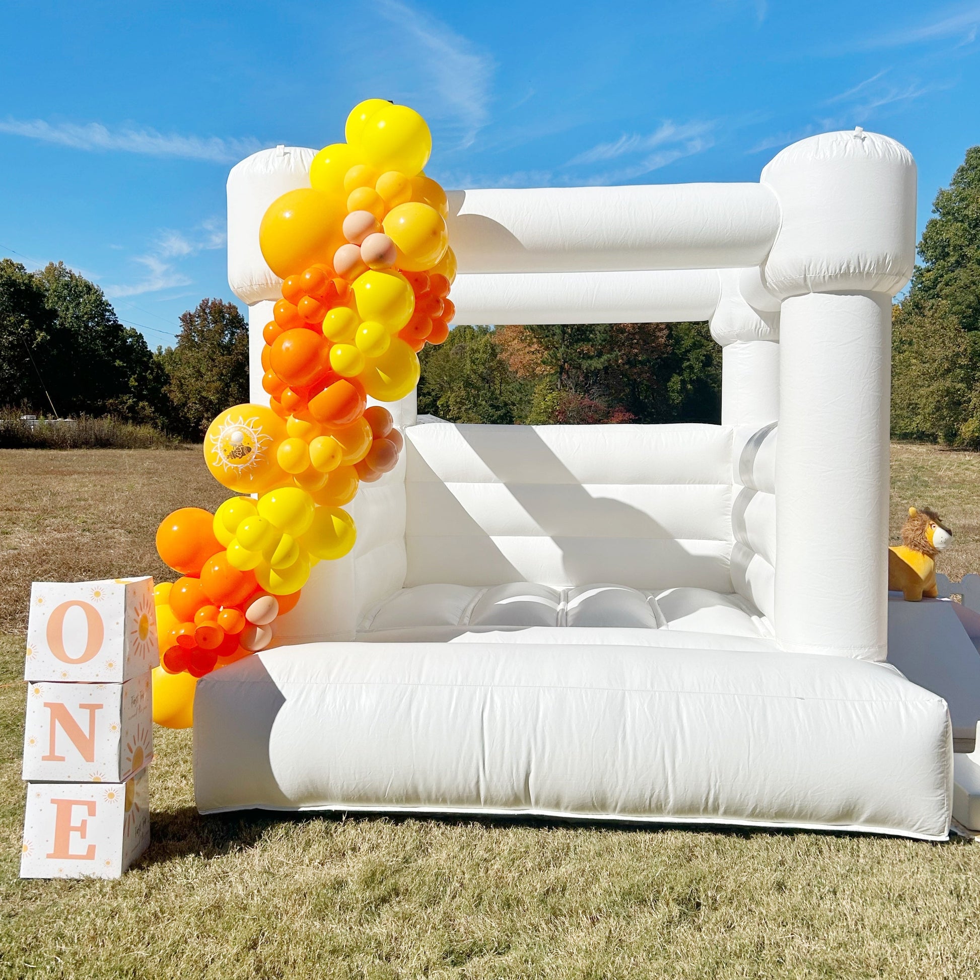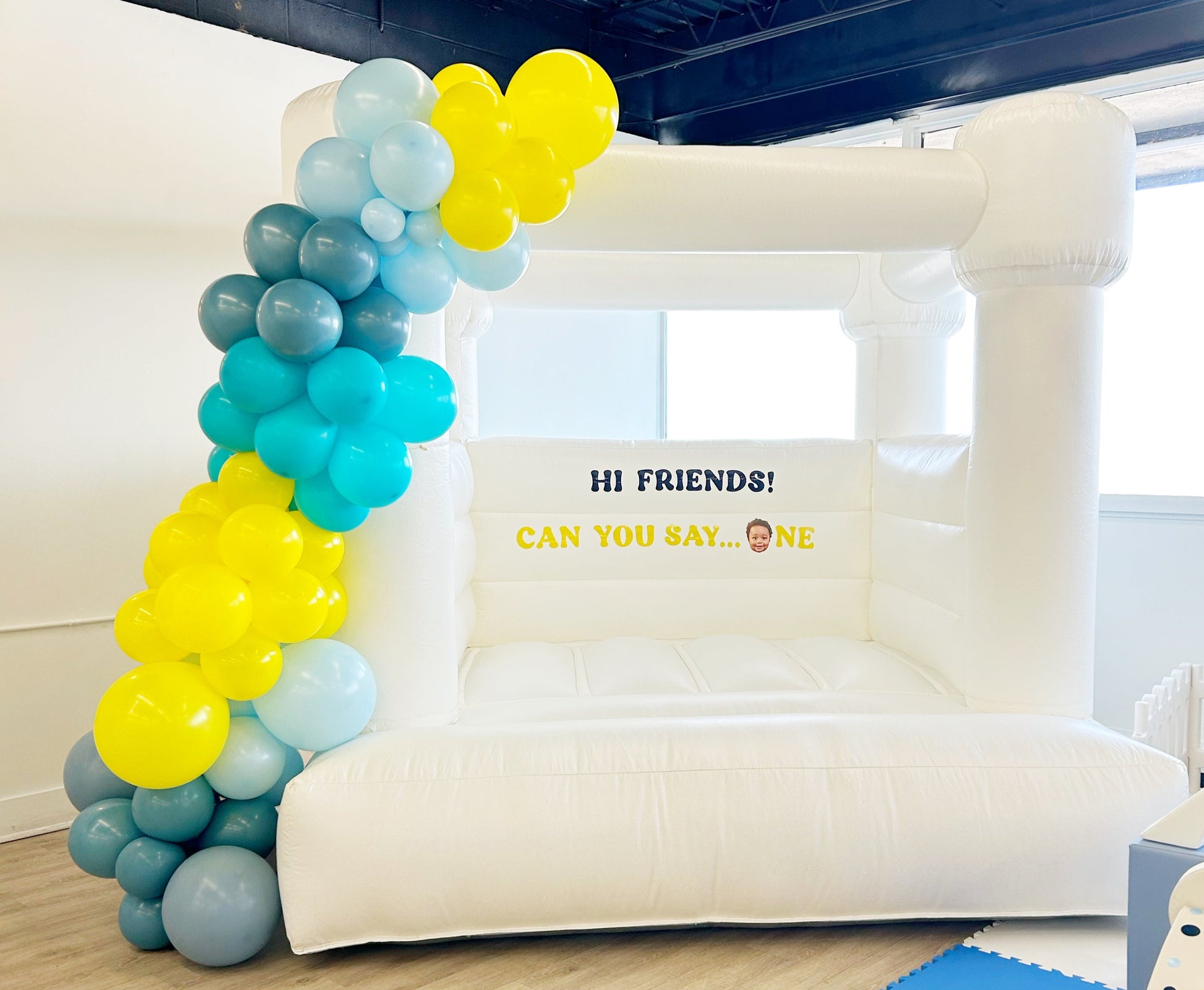 Our Marshmallow bounce house rents for up to four hours. Additional hours can be purchased for $50. Luxe Slide, balloon services and custom vinyl decals can be added for an additional fee. ABSOLUTELY NO FACE PAINT!